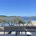 Dit strand appartement in Vodice heeft een patio, een balkon en een kleedruimte, en is voorzien van modern comfort zoals airconditioning, evenals TV met meerdere kanalen en een flatscreen TV met satellietzenders. Deze accommodatie heeft een apart toilet en een douche voor uw comfort. Er zijn ook een haardroger en badlakens.